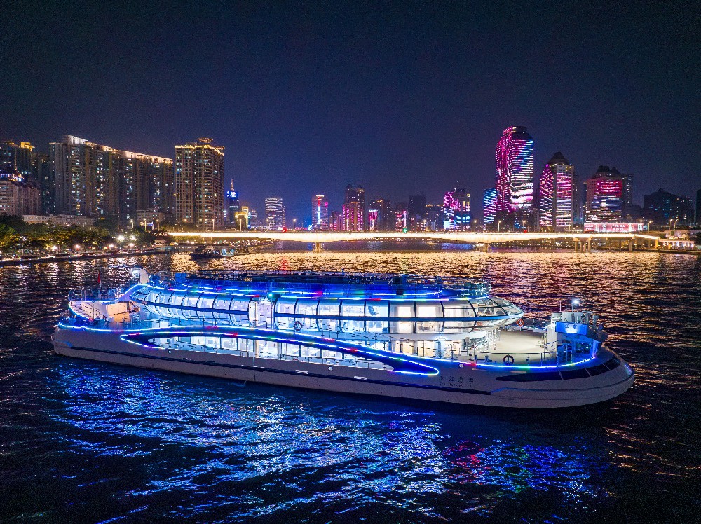 “珠江”之名源于广州,它是广州的母亲河,不仅哺育了广州人民,更孕育了广州的历史文化与人文情怀。珠江沿岸的文化史迹既可日游又可夜游,乘客登船临风,沿着 “珠江走廊”观赏丽日蓝天下的秀丽景色以及夜晚两岸灯光璀璨的动人美景。追寻广州悠久的历史及新潮的文化,阅尽广州文化风情。珠江两岸伫立着各种各样的特色建筑,向人民诉说着这座城市的一点一滴,倘若不游珠江沿岸文化史迹,可以说就未曾真正游览过广州。珠江夜游融合广府风情与现代科技,以璀璨灯光与历史文化为幕,打造视觉与文化的双重盛宴,为游客提供多样化、高品质的夜间文旅体验。